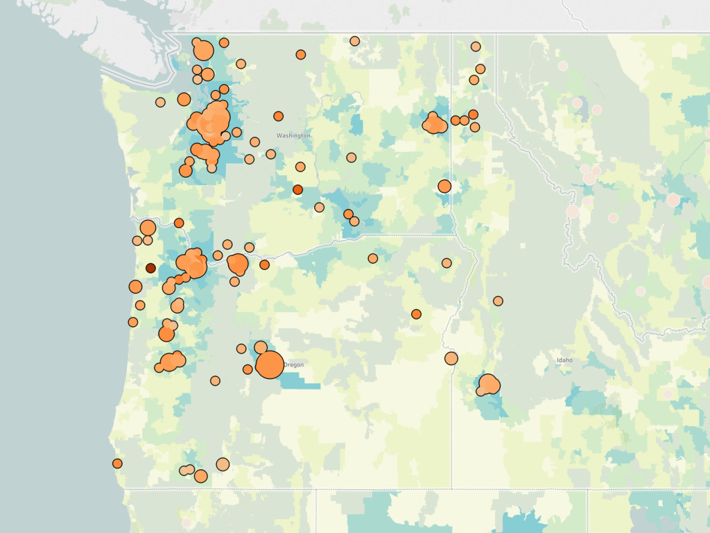 I (and many others) expected the famous Pacific Northwest to utterly kick butt on this map, and relative to population, it’s pretty good. Still, a bit underwhelming given the hype around the place.